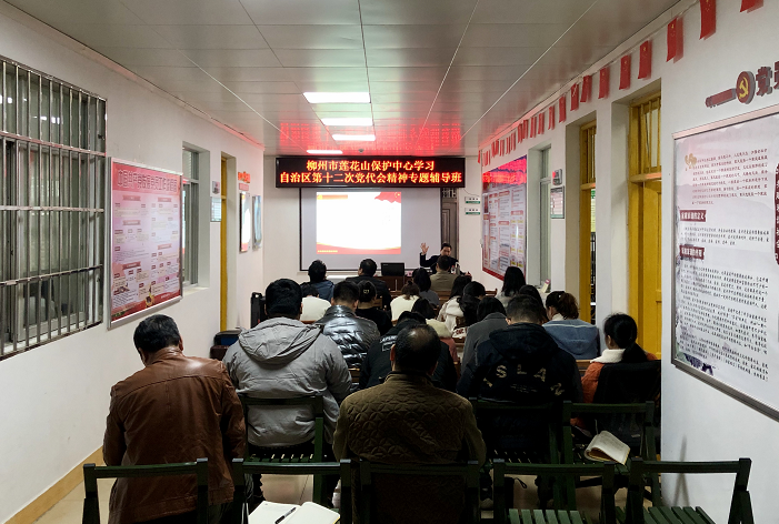 近期,柳州市莲花山保护中心组织专题培训班,辅导党员干部职工学习十九届六中全会精神和自治区第十二次党代会精神,推动党员干部政治上有新提升、思想上有新收获、精神上有新升华。