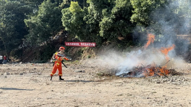 随后的实战模拟将演练推向高潮。从火情发现报告、应急响应启动、队伍快速集结,到火场勘察、方案制定及多线扑救,整个流程衔接紧密、指挥有力,高度模拟了火场的复杂状况与紧张氛围。演练中,莲花山保护中心半专业森林防火队、三门江林场专业森林消防队、城中区半专业森林消防队、苗圃林场半专业森林消防队四支力量紧密协作,灵活运用“风力灭火压制、以水灭火攻坚”等综合战术,成功完成模拟火情的扑灭任务,展现了高效的协同作战能力和专业的技战术水平,充分检验了联防联控机制的实战效果。