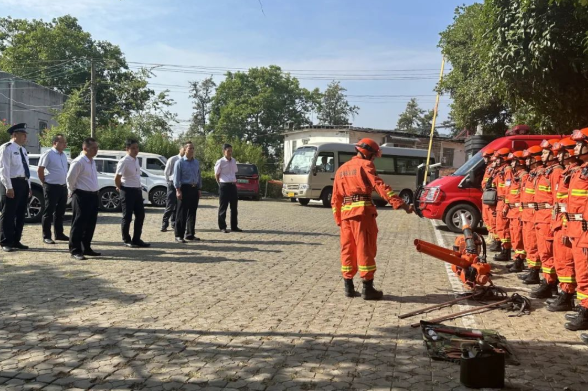 检查组首先检阅了中心半专业森林防火队伍,听取了半专业森林防火队队长林继秋对森林防火设施配备情况、队伍人员组成、主要扑火工具的作用及协同作战方法的介绍,随后检查组来到三门江国家森林公园大门,检查防火执勤点的值班值守及防火宣传工作落实情况。