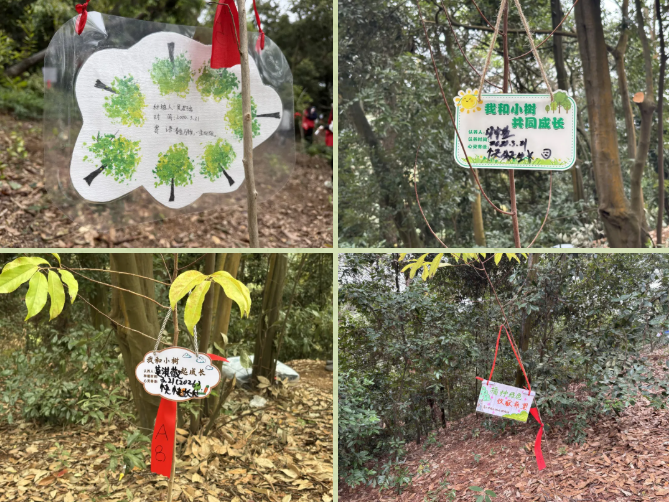 种下一棵树苗后,孩子们为小树苗挂上亲手制作的“护绿小卡片”,卡片上稚嫩笔迹写下的是与小树共成长的美好约定,也让这次绿色行动多了一份特别的仪式感。