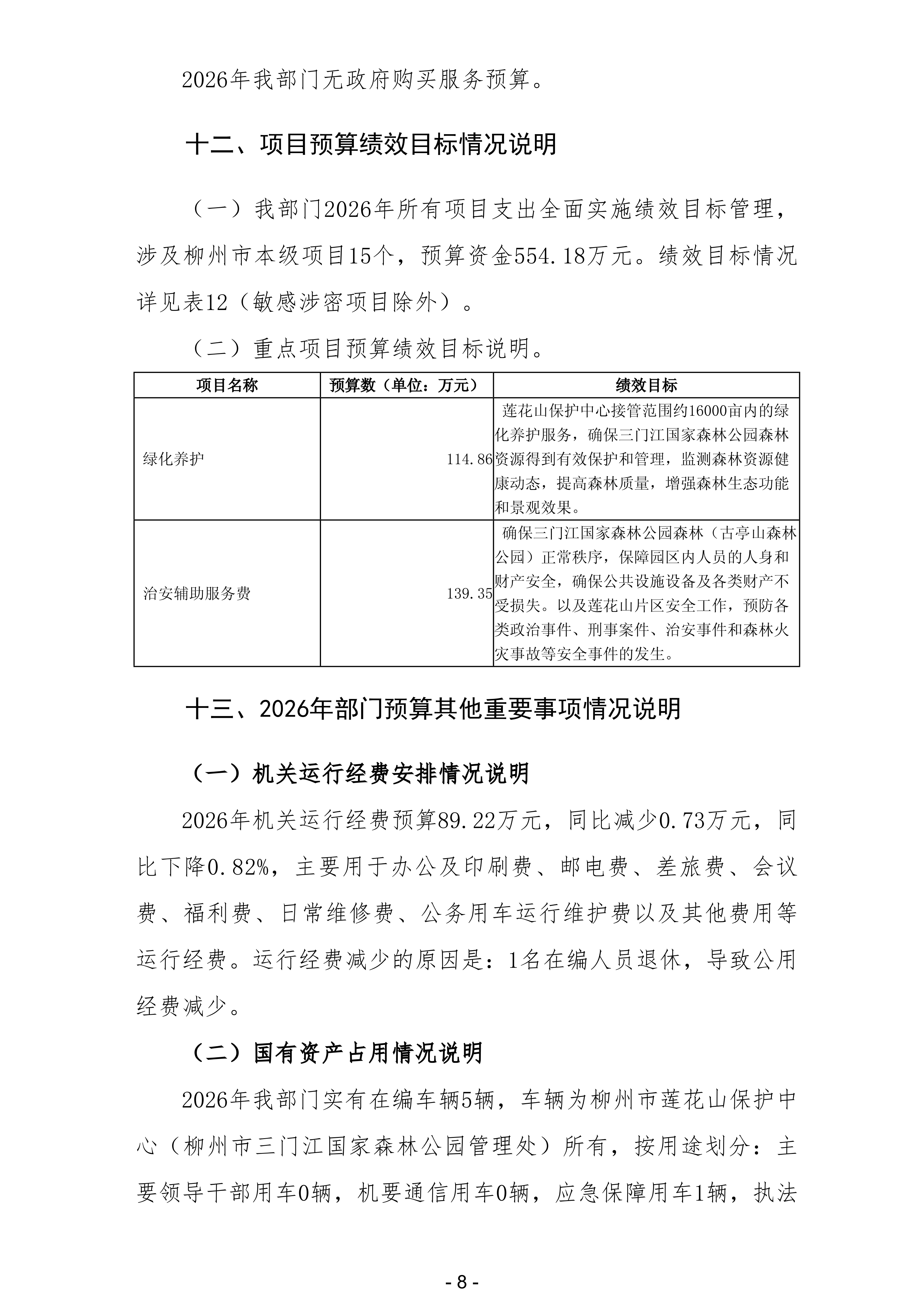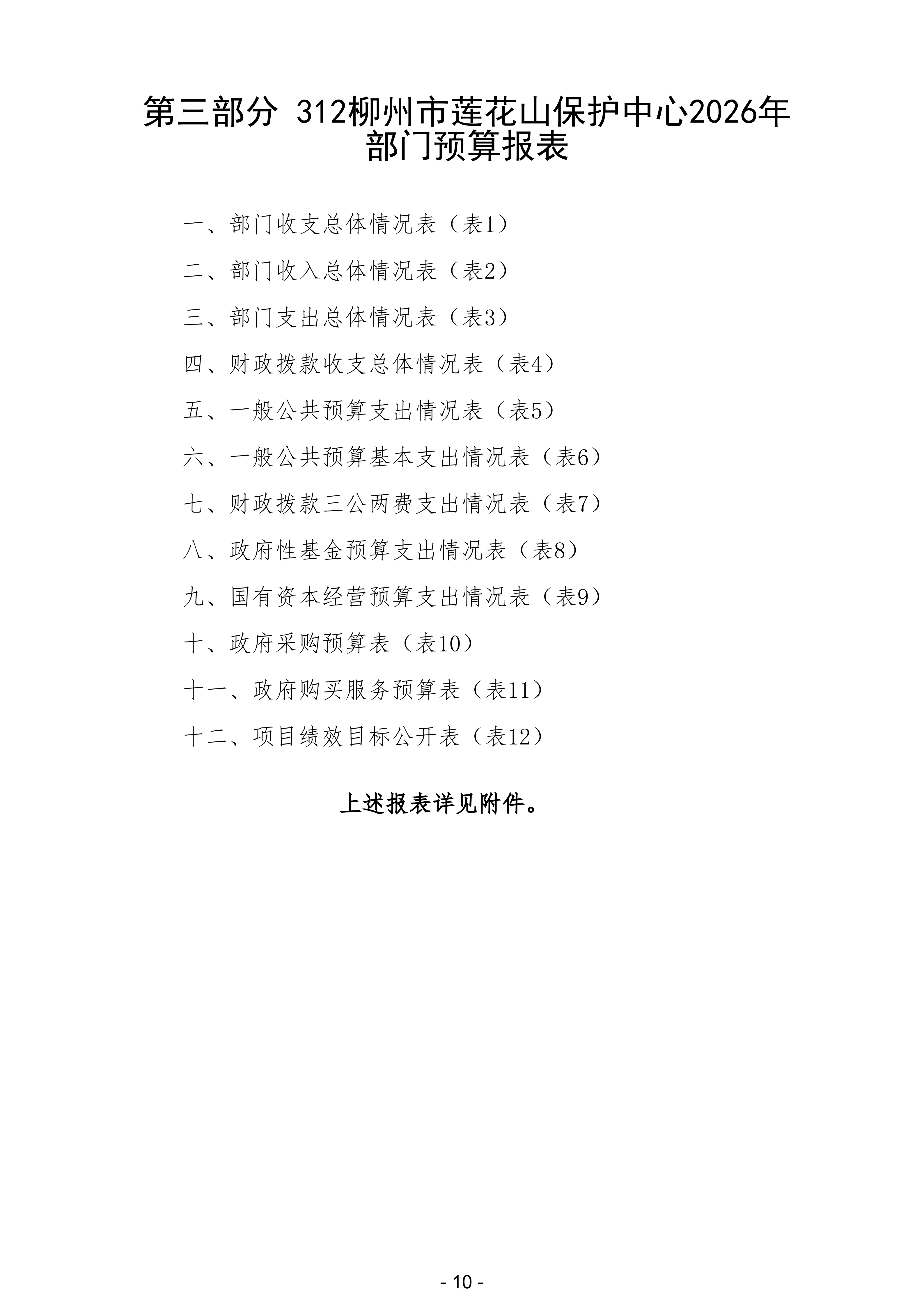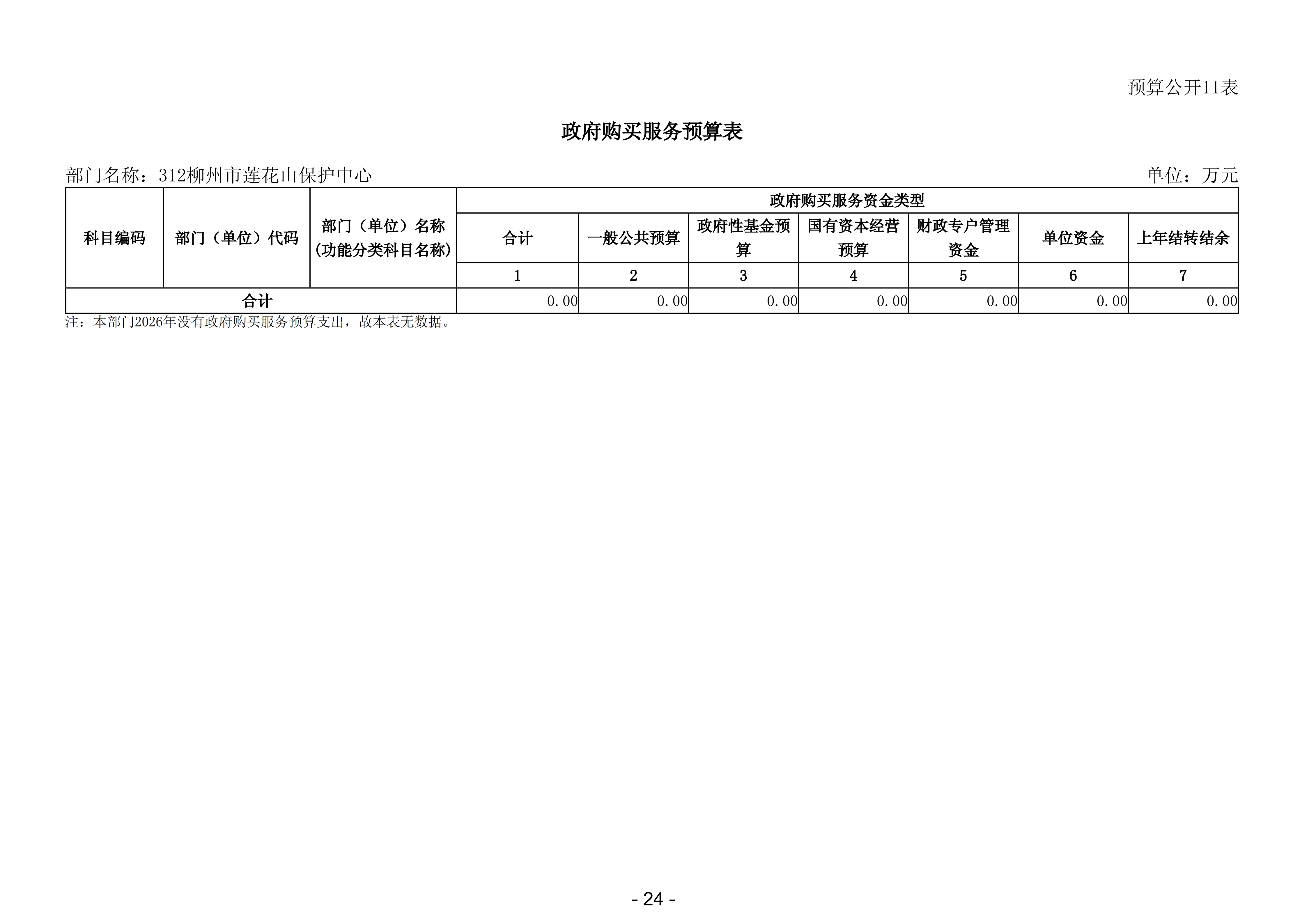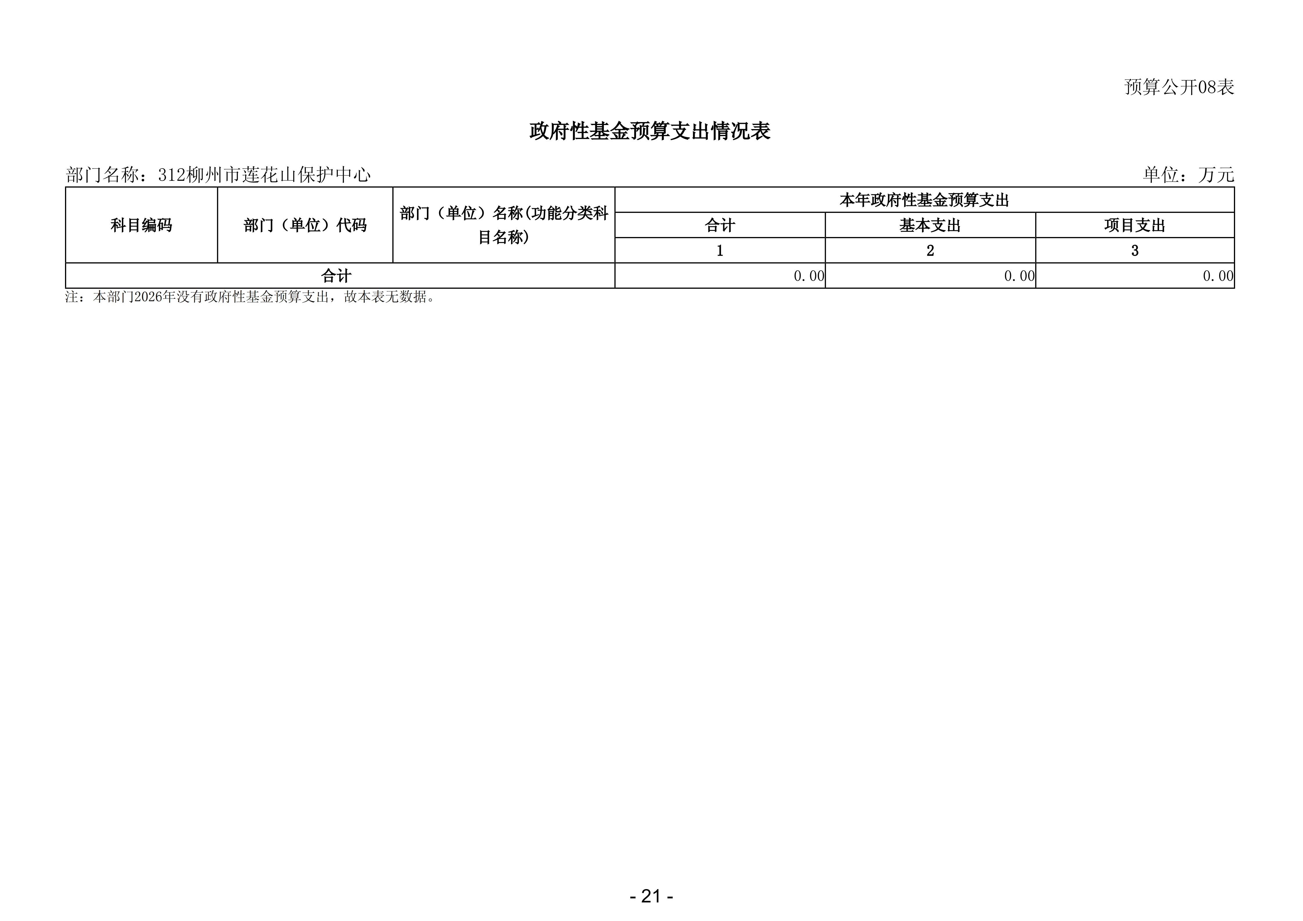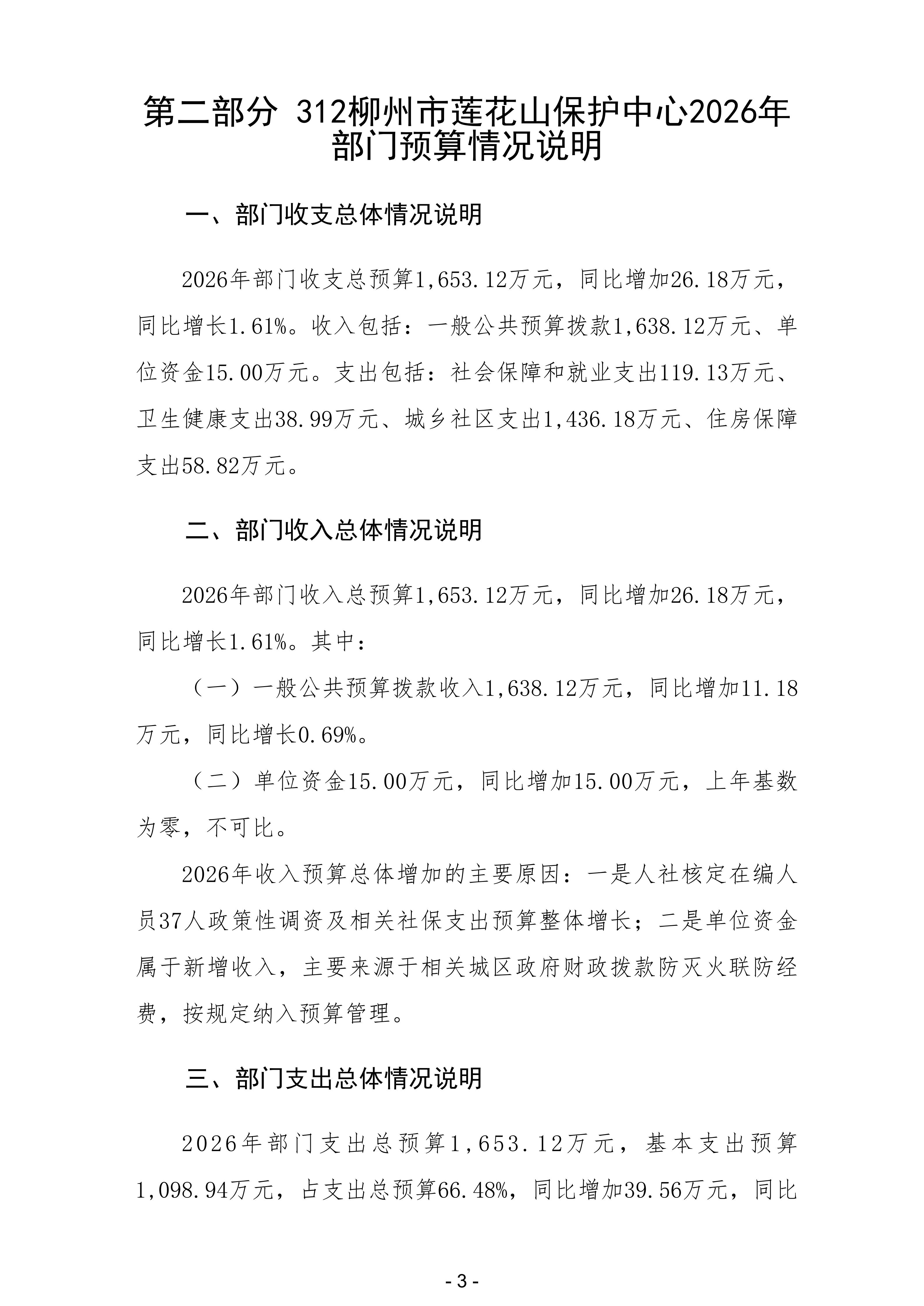 312柳州市莲花山保护中心2026年部门预算公开说明