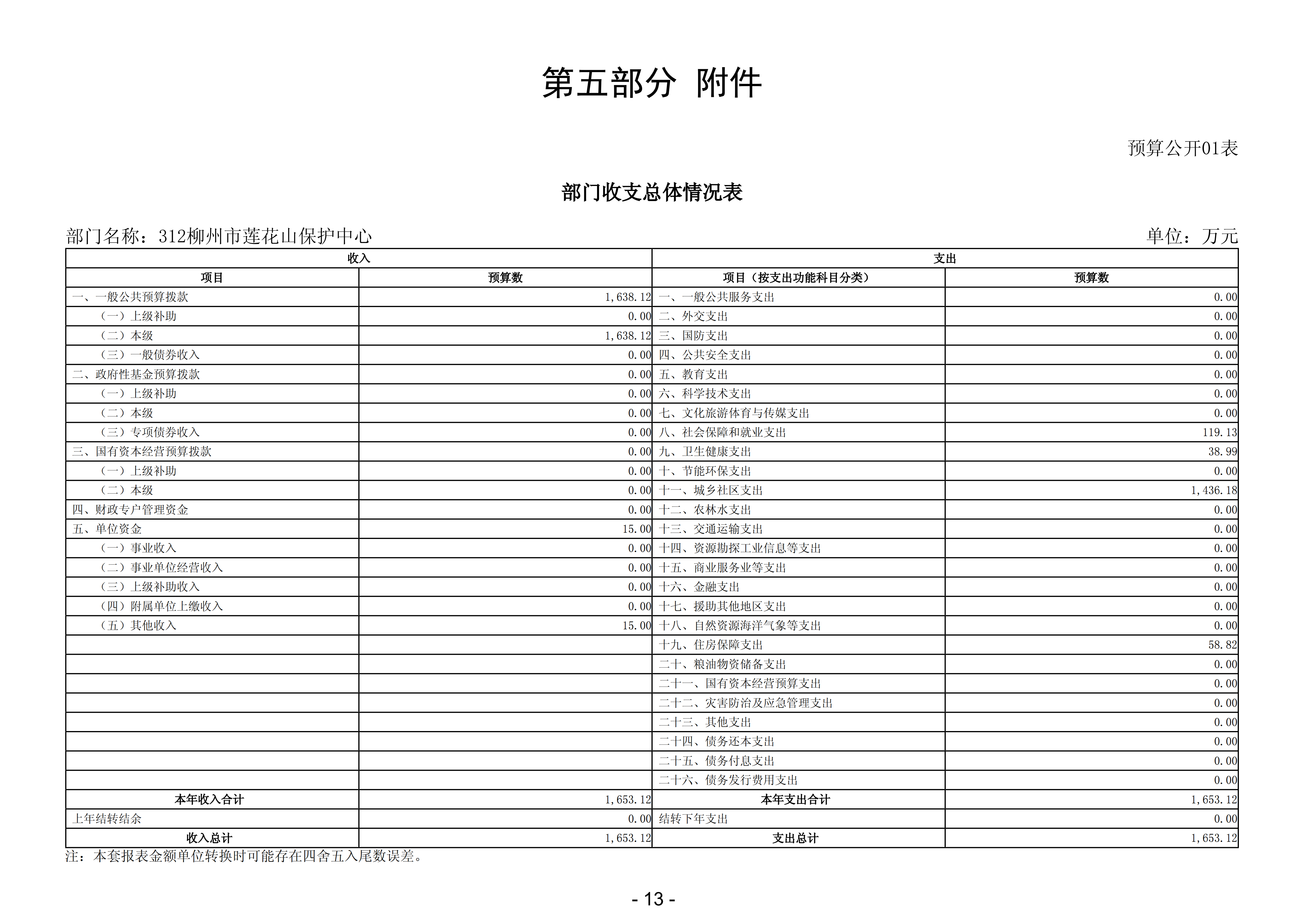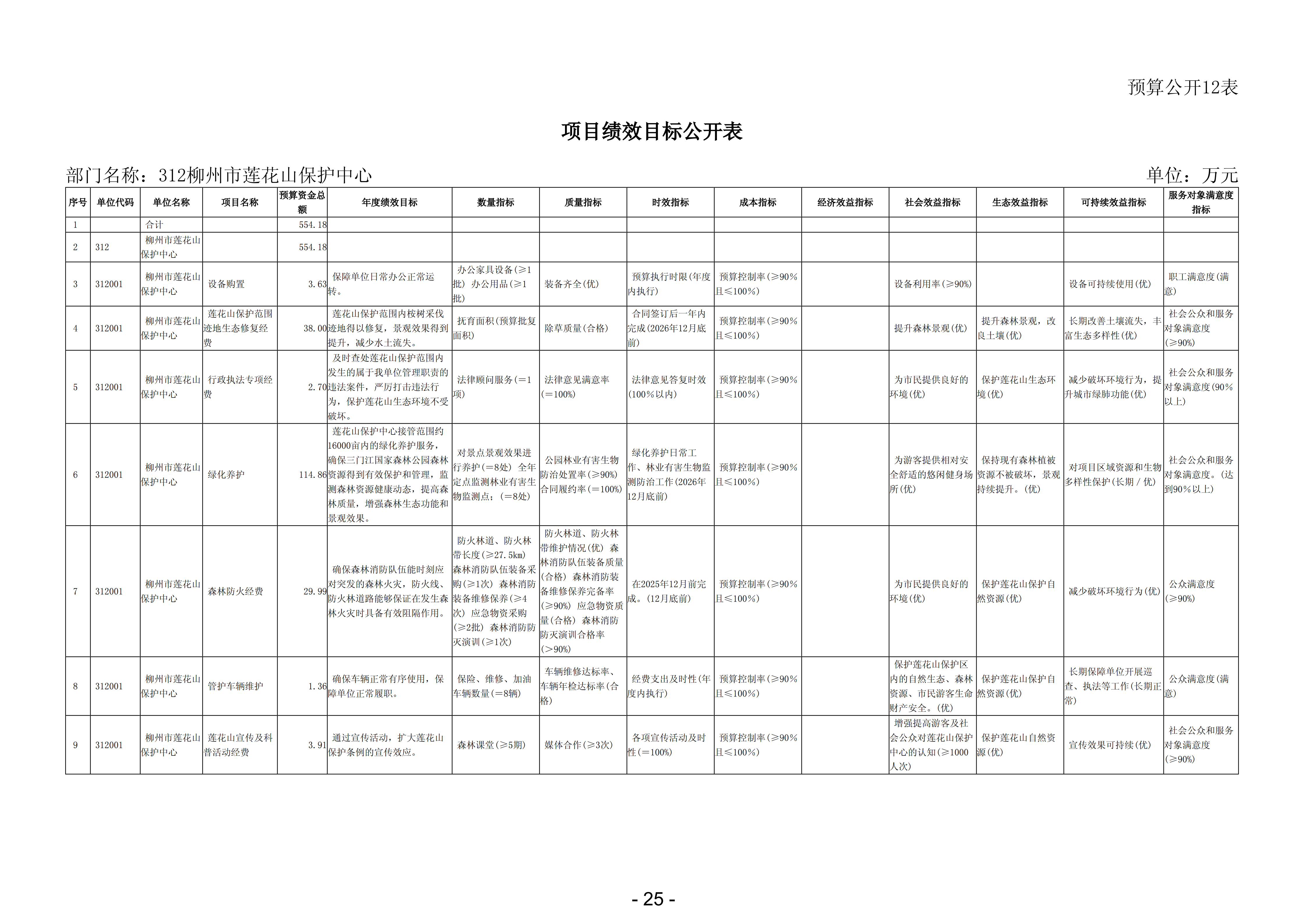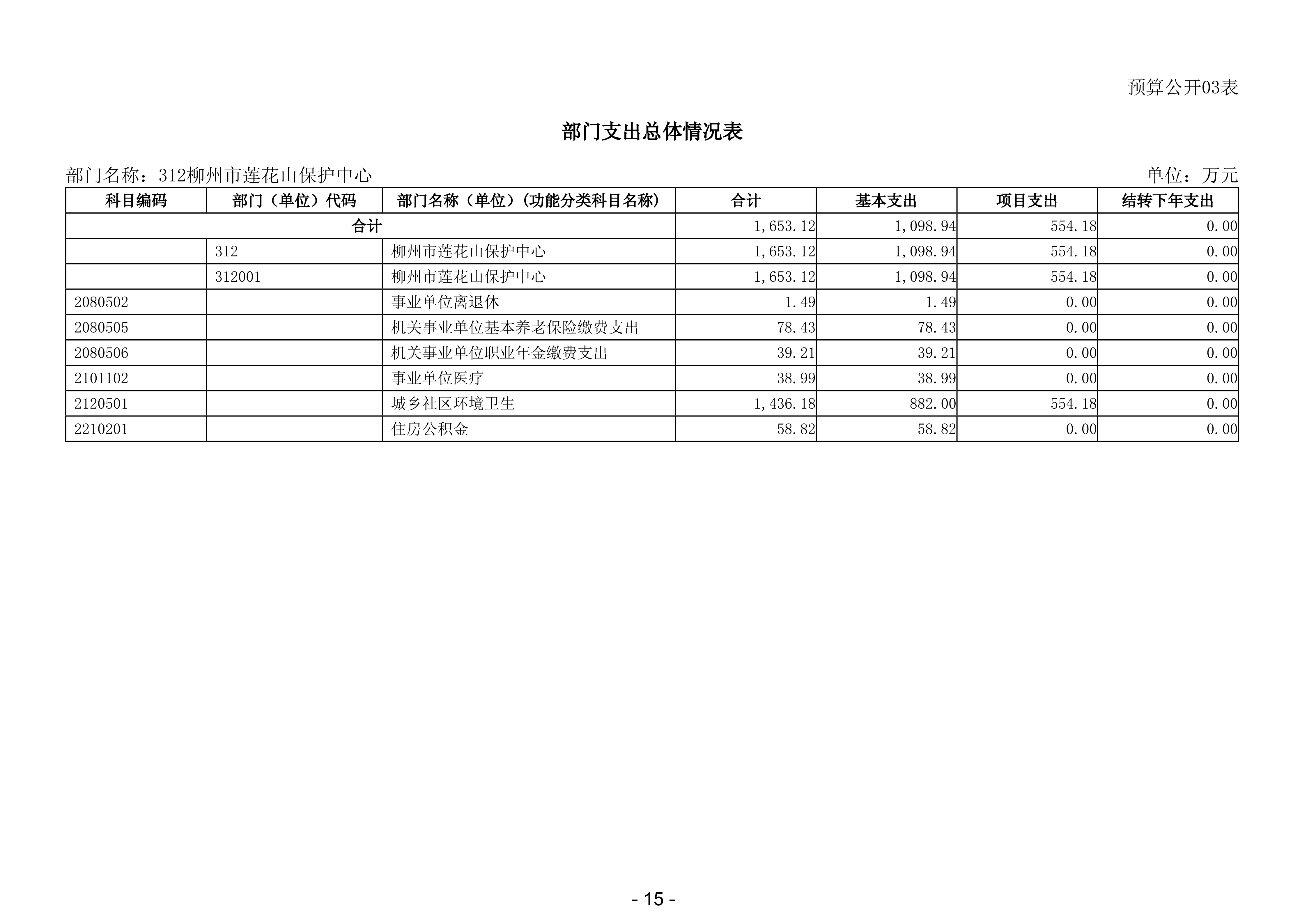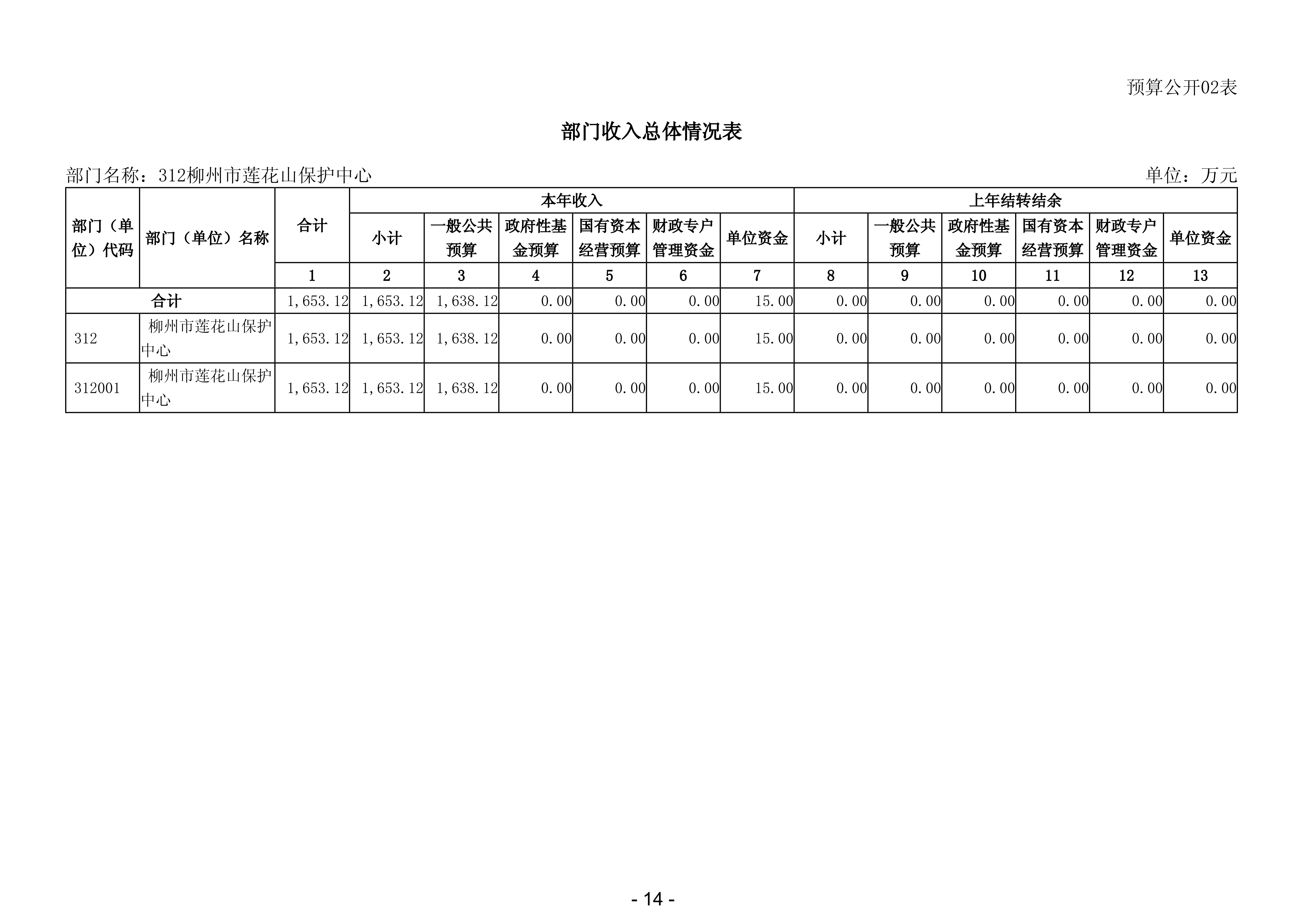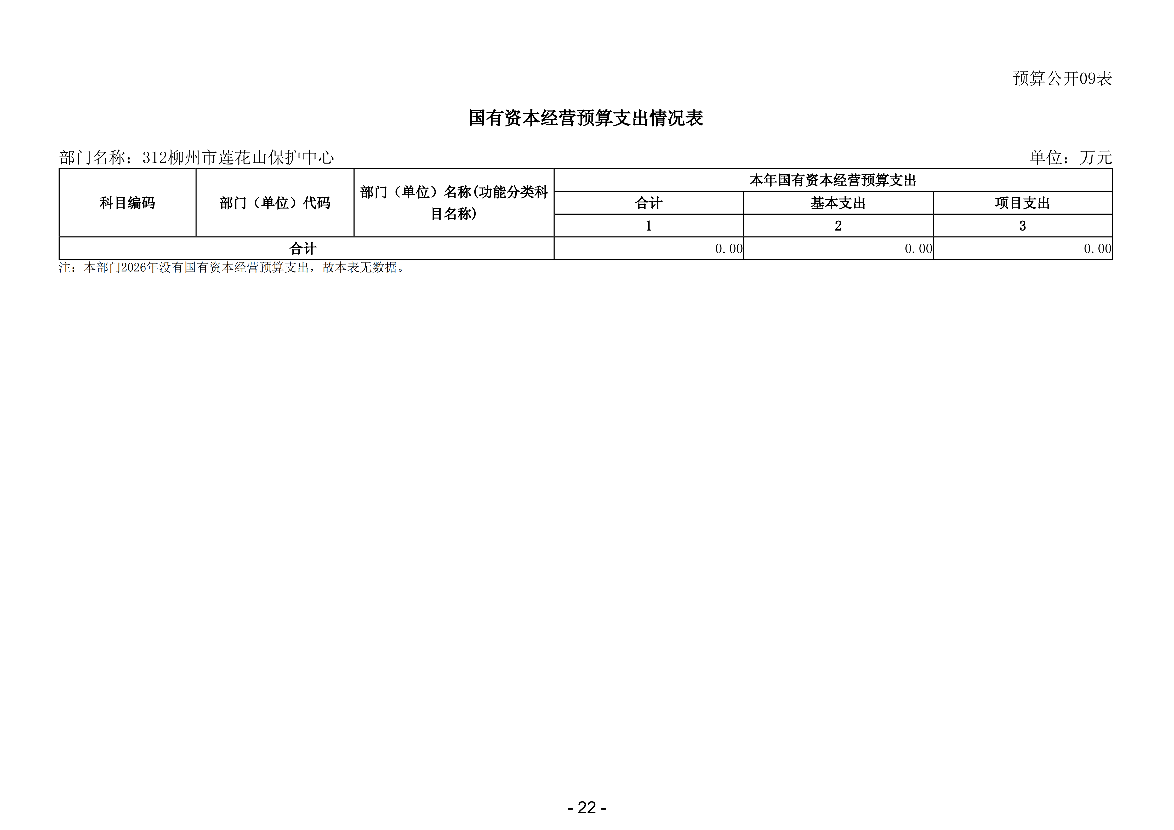 312柳州市莲花山保护中心2026年部门预算公开说明