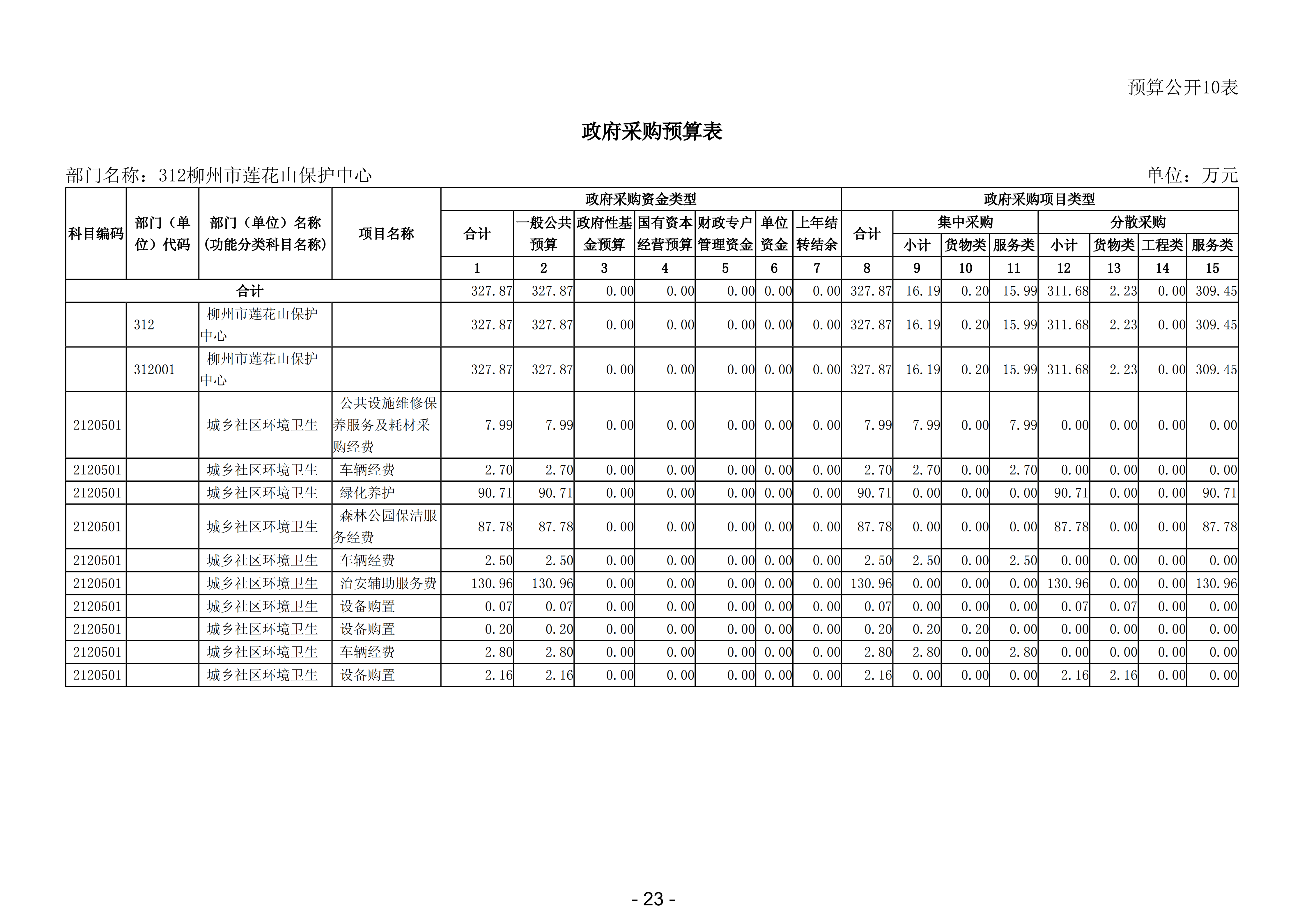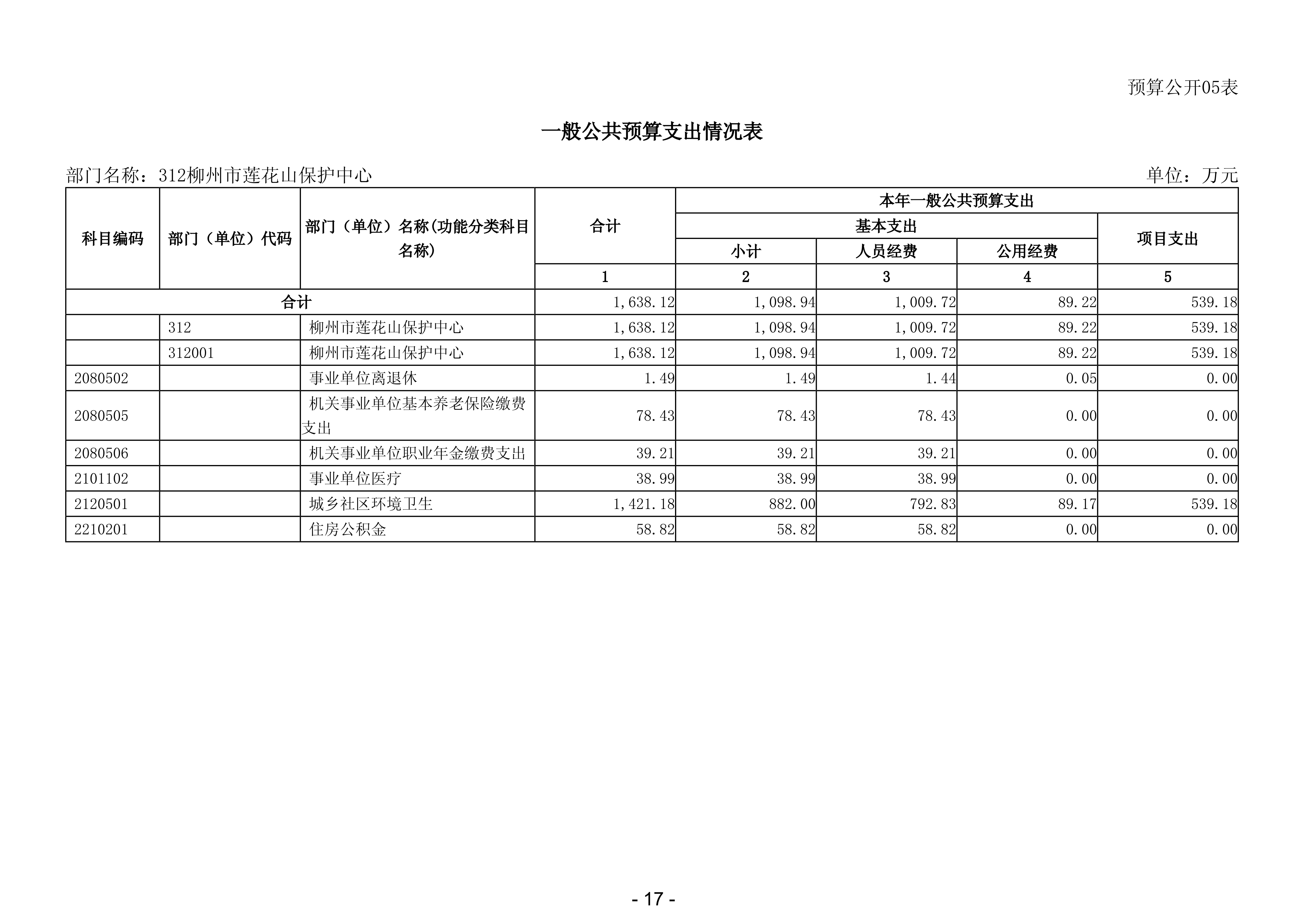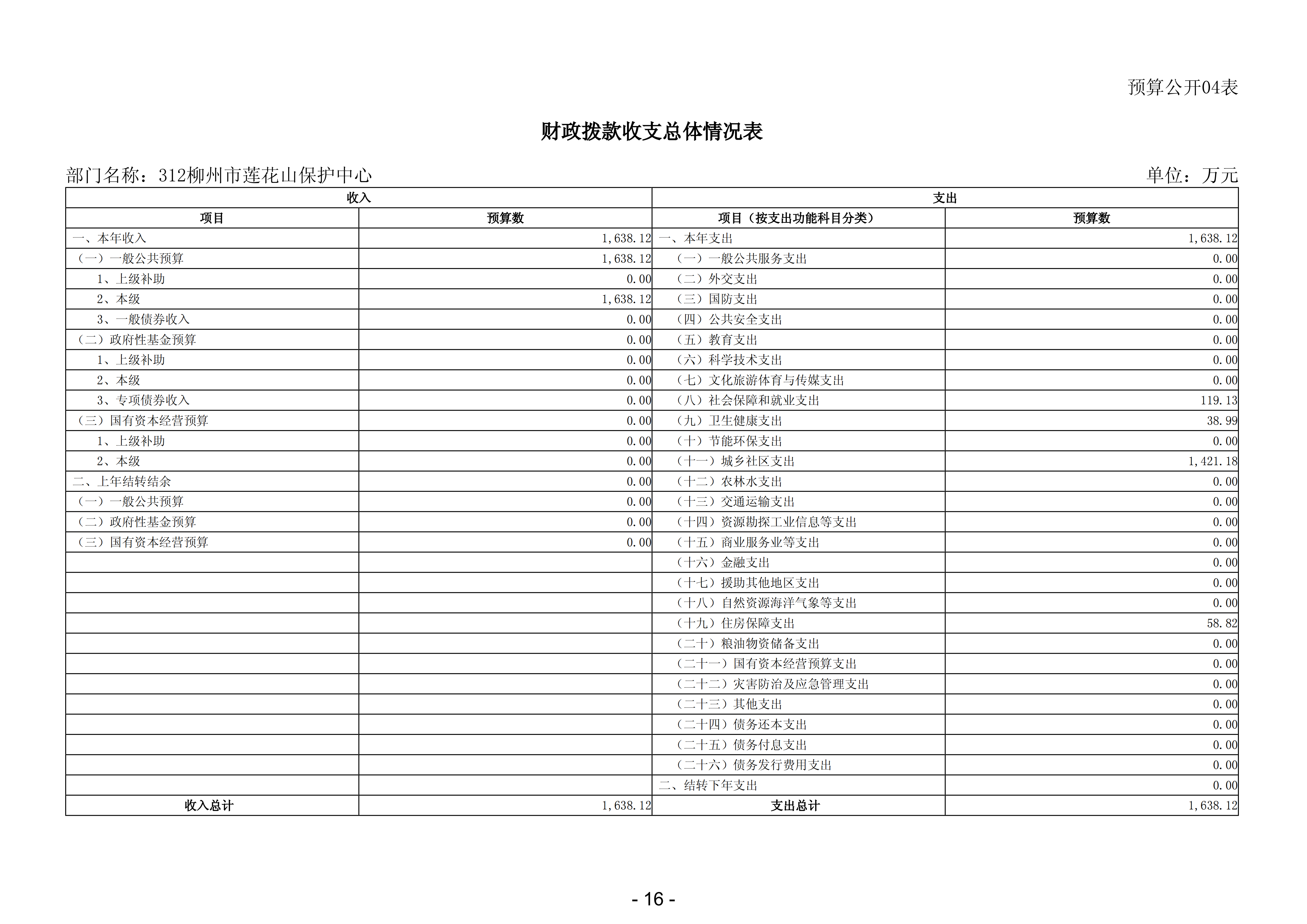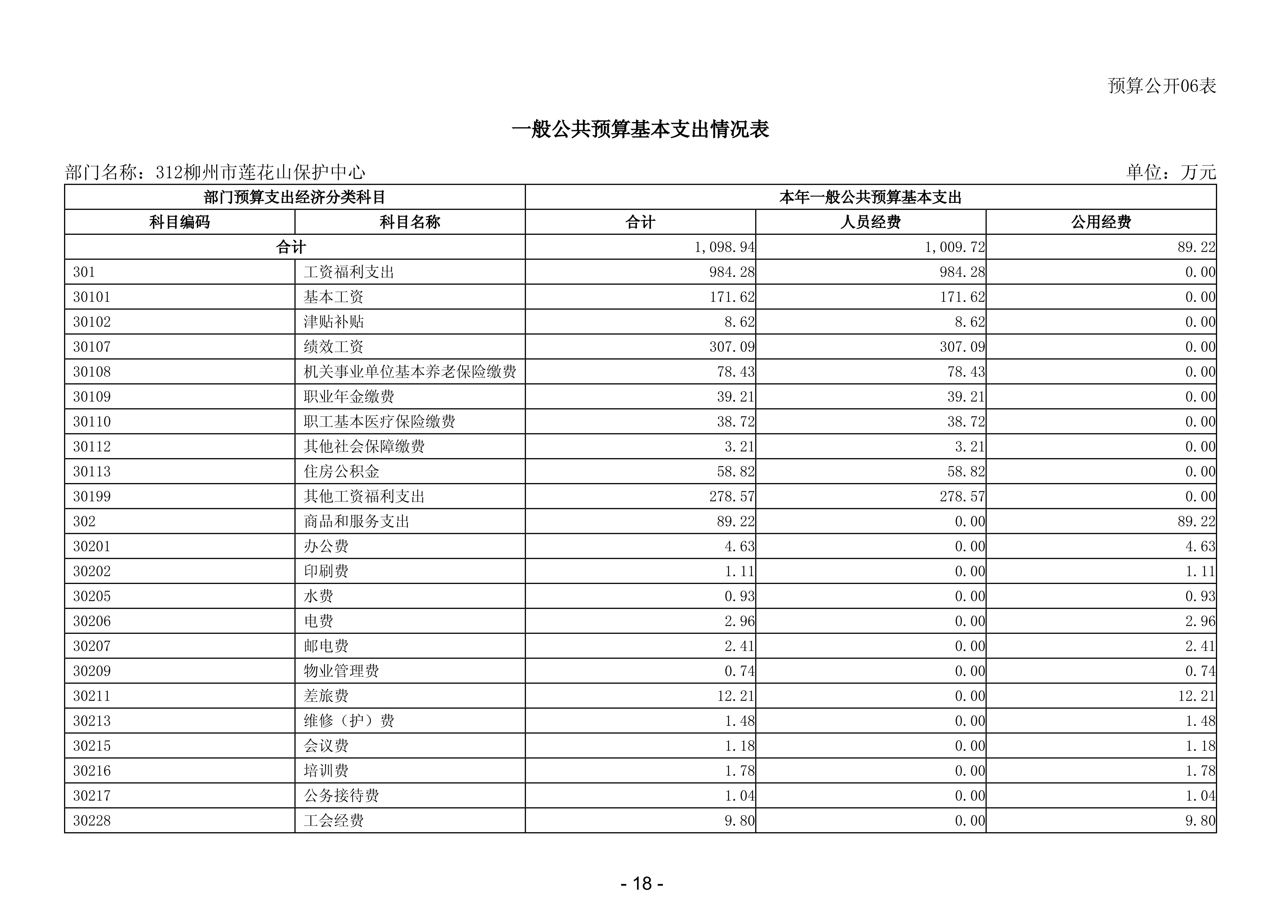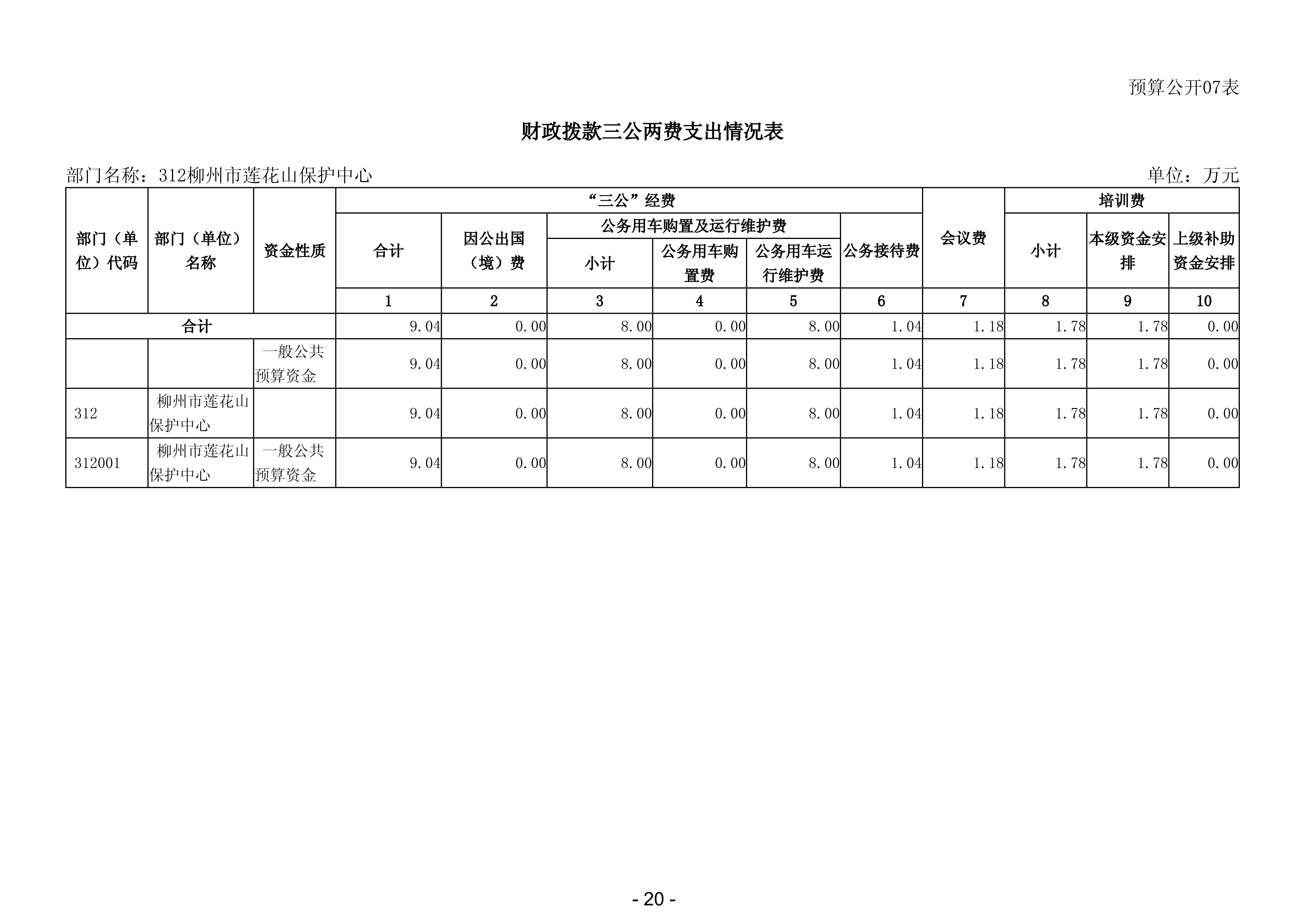 312柳州市莲花山保护中心2026年部门预算公开说明
