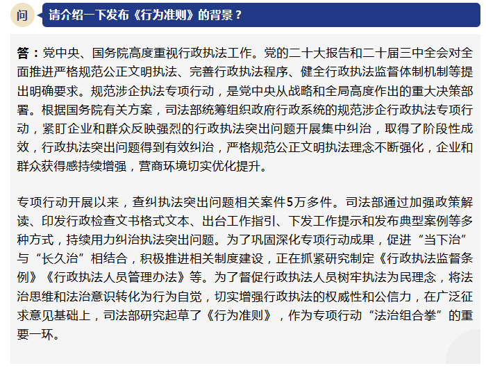 司法部有关负责人就《行政执法人员行为准则》答记者问